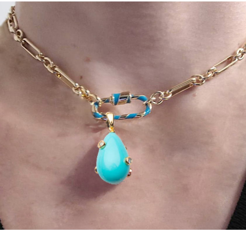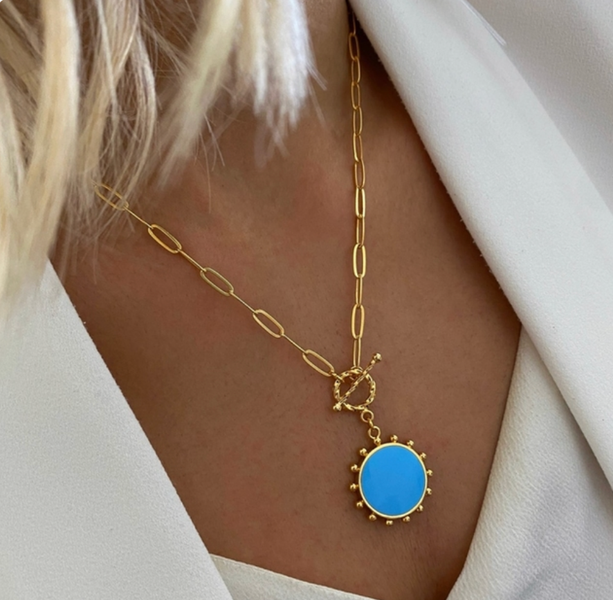 The Aurora Necklace is a 🔆 for your outfit! Add some sparkle and shine with this gold-plated beauty encrusted with natural stones and cubic zirconias. You'll be 🤩 with this stunning piece!