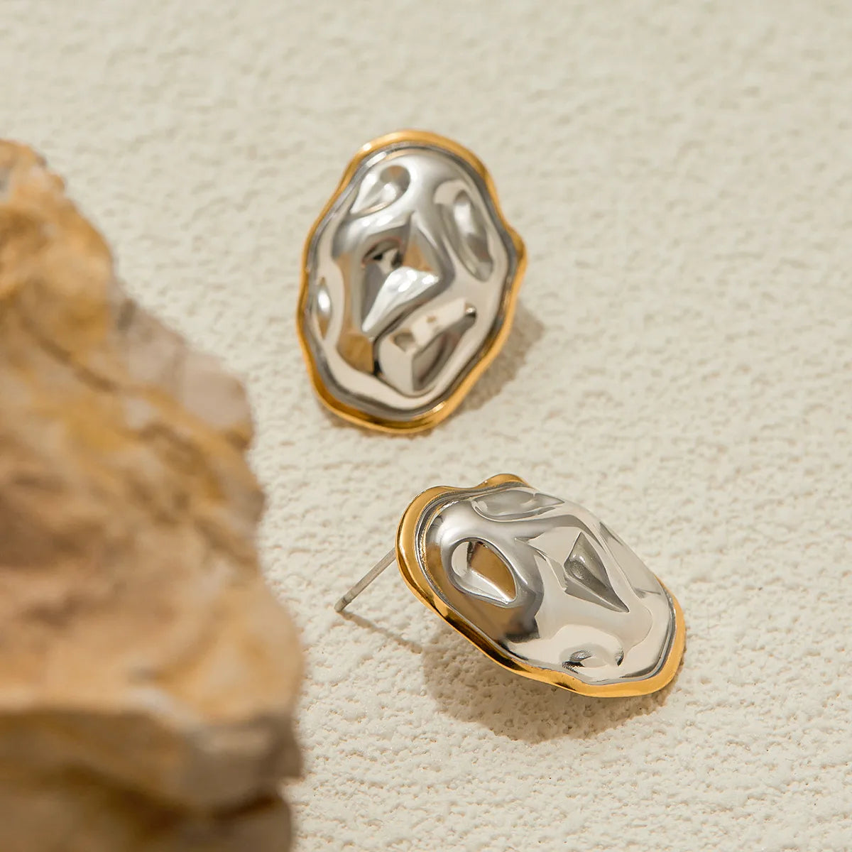 Add a splash of sparkle with the Evonna earrings! These gold-plated, textured two-toned ear studs bring a fun twist to your everyday look. Perfect for adding a playful pop of shine, they effortlessly brighten any outfit with their unique design and charming contrast.