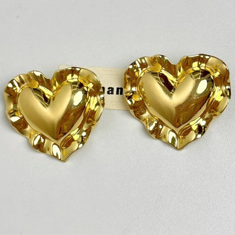 Add a bold touch to your look with the Faye Earrings—oversized heart studs that make a fun, flirty statement. Perfect for turning heads and spreading love wherever you go!