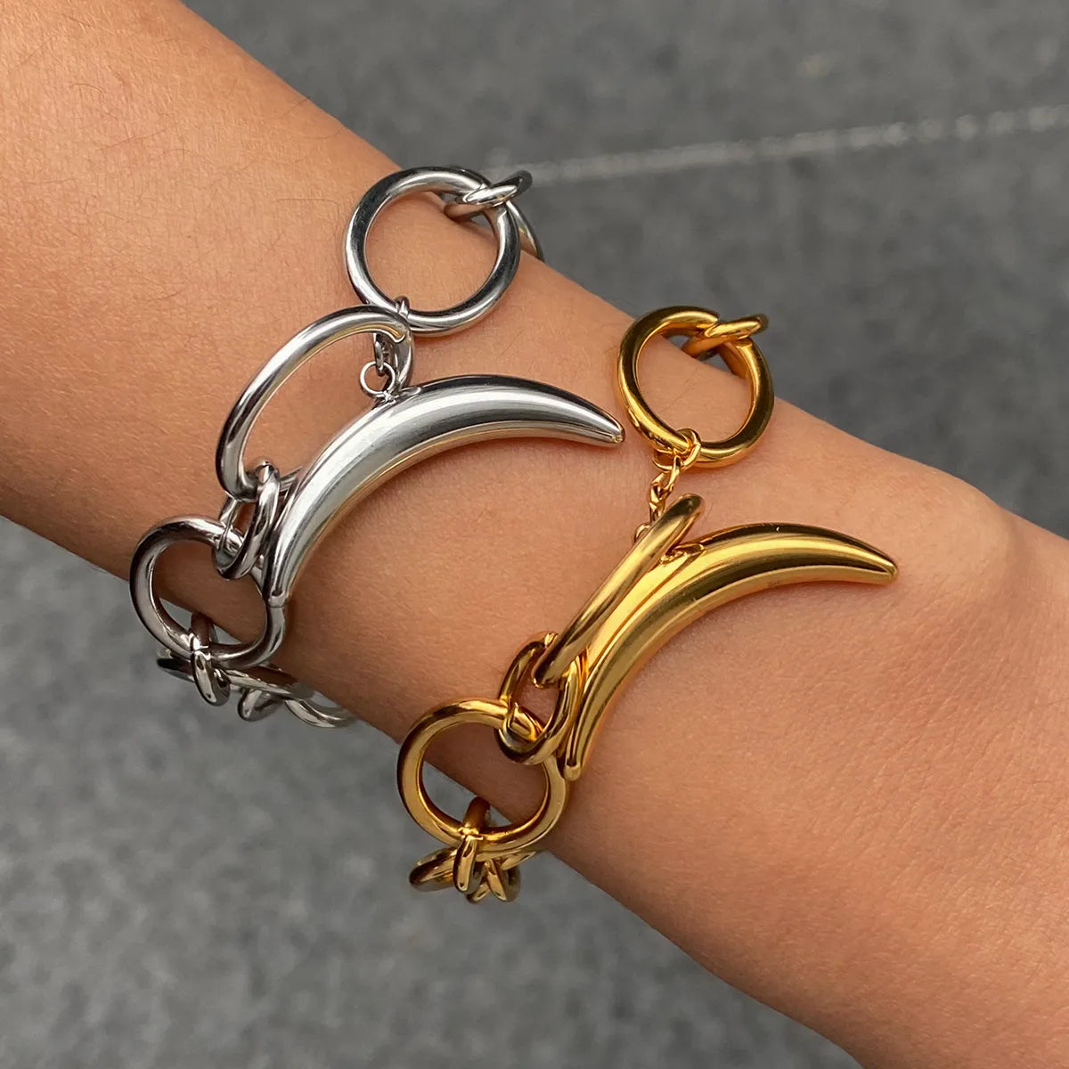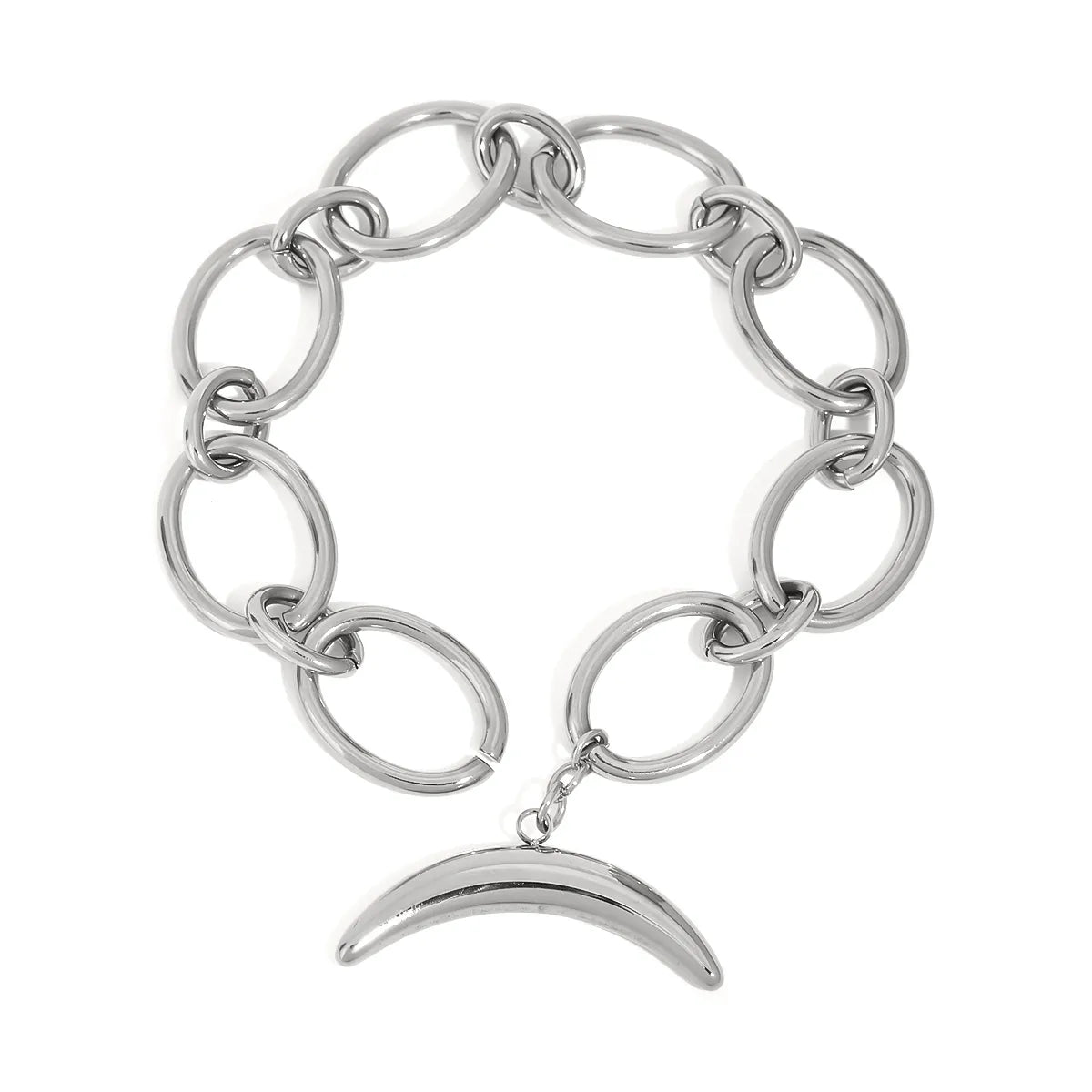 Add a bold twist to your look with the Sage bracelet, featuring oversized links that make a statement. Its playful design effortlessly elevates any outfit, perfect for those who love to mix fun with fashion. Lightweight and eye-catching, this bracelet is your new go-to accessory for adding a touch of charm and confidence.